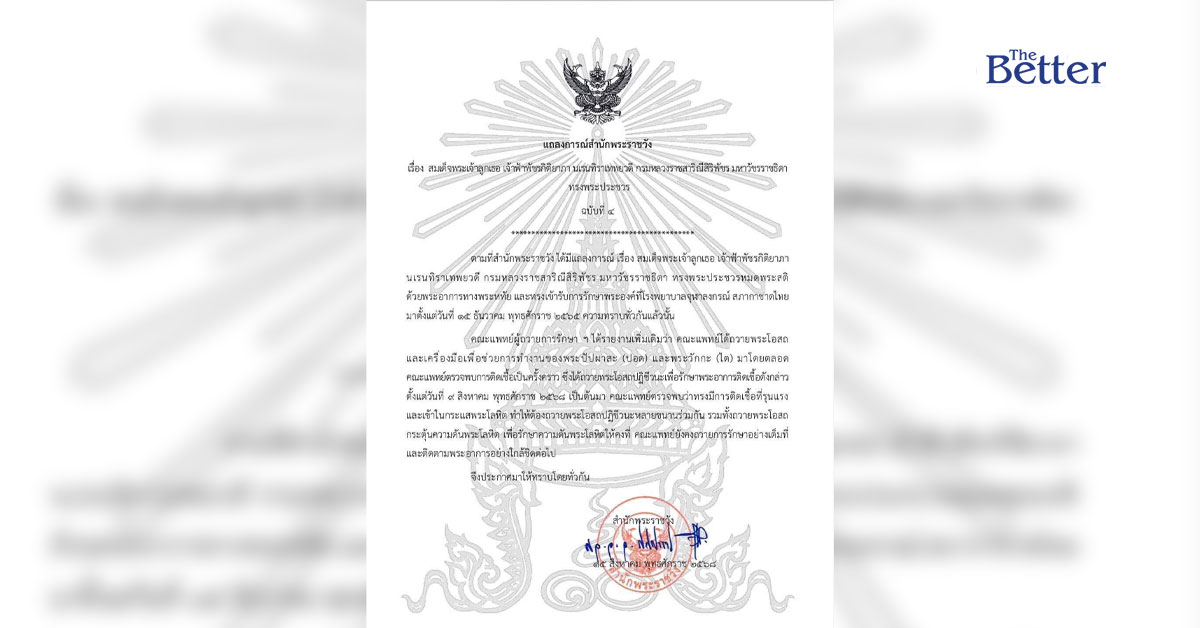 สำนักพระราชวัง ออกแถลงการณ์ ฉบับที่ 4 สมเด็จพระเจ้าลูกเธอ เจ้าฟ้าพัชรกิติยาภา นเรนทิราเทพยวดี กรมหลวงราชสาริณีสิริพัชร มหาวัชรราชธิดา ทรงพระประชวร