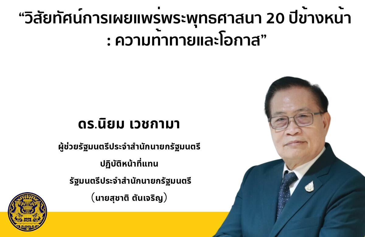 "นิยม เวชกามา" ผู้ช่วย รมต.ประจำนายกฯ เสนอวิสัยทัศน์ "การเผยแผ่พระพุทธศาสนา 20 ปี" วาง 4 ยุทธศาสตร์หลัก ปฏิรูปการศึกษา–การเผยแผ่–การบริหารจัดการคณะสงฆ์ และสร้างเครือข่ายพุทธทั่วโลก