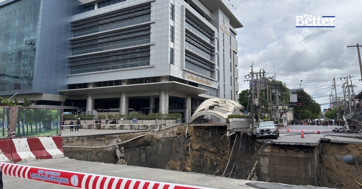 รฟม. สั่งการให้หยุดก่อสร้าง หลังเกิดเหตุถนนทรุดตัว บริเวณหน้าทางเข้าโรงพยาบาลวชิรพยาบาล ถนนสามเสน