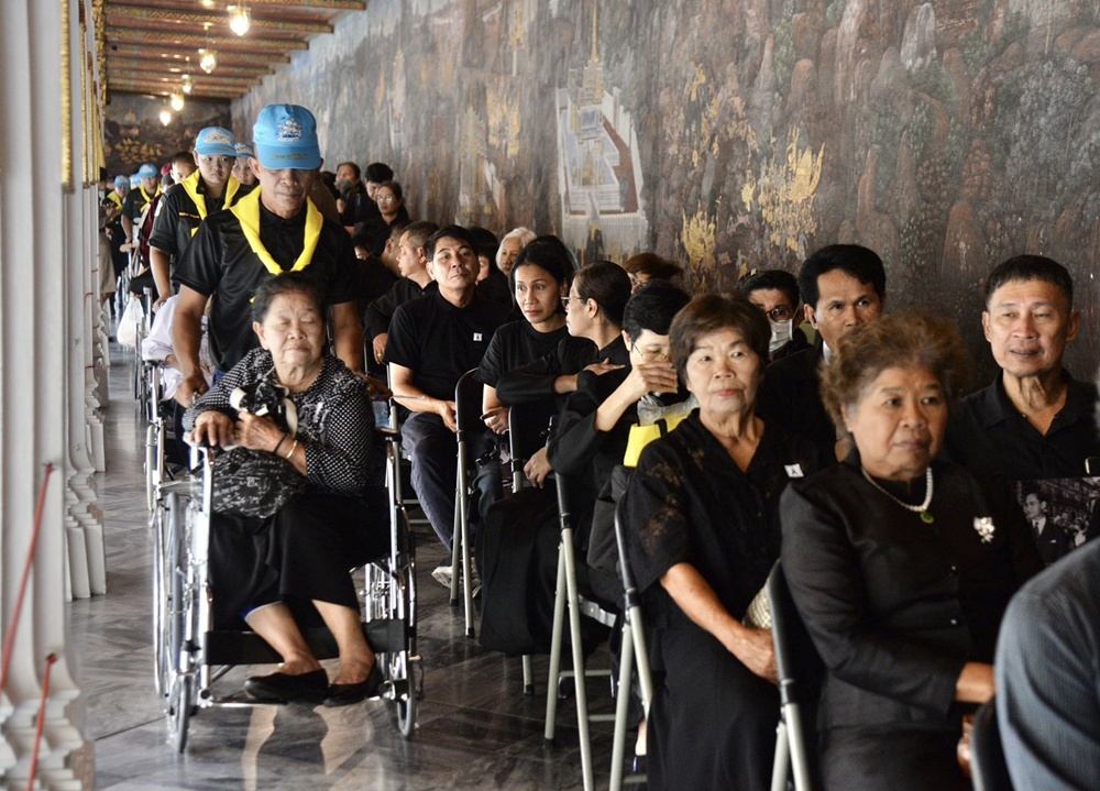 โดยมีประชาชนทั้งในกรุงเทพฯและต่างจังหวัด จำนวนมากแต่งกายสุภาพด้วยชุดสีดำไว้ทุกข์ ผ่านจุดคัดกรองแรกที่ท้องสนามหลวง แล้วเดินทางมาเข้ายังประตูมณีนพรัตน์ แล้วเดินไปตามพระระเบียง ออกประตูศรีรัตน์ เลี้ยวขวาแล้วเดินตรงเข้าประตูพระที่นั่งดุสิตมหาปราสาท