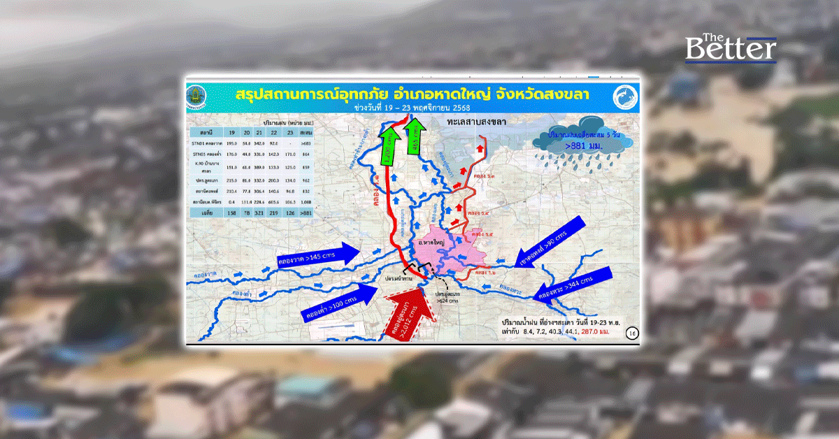 กรมชลประทานเผย ปริมาณน้ำสูงสุดมาถึงใจกลางหาดใหญ่ แล้ว ระดับน้ำเริ่มทรงตัว ลดลงเล็กน้อย ติดตามสถานการณ์ใกล้ชิดตลอด 24 ชั่วโมง หากไม่มีฝนตกหนัก น้ำจะเข้าสู่ระดับตลิ่ง 27 พ.ย.
