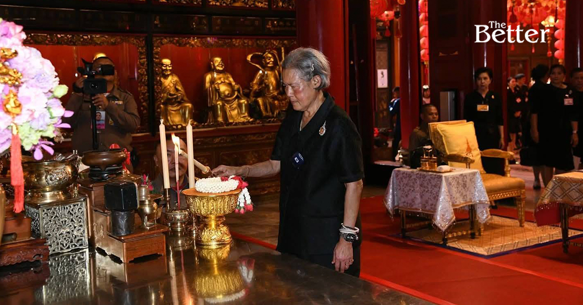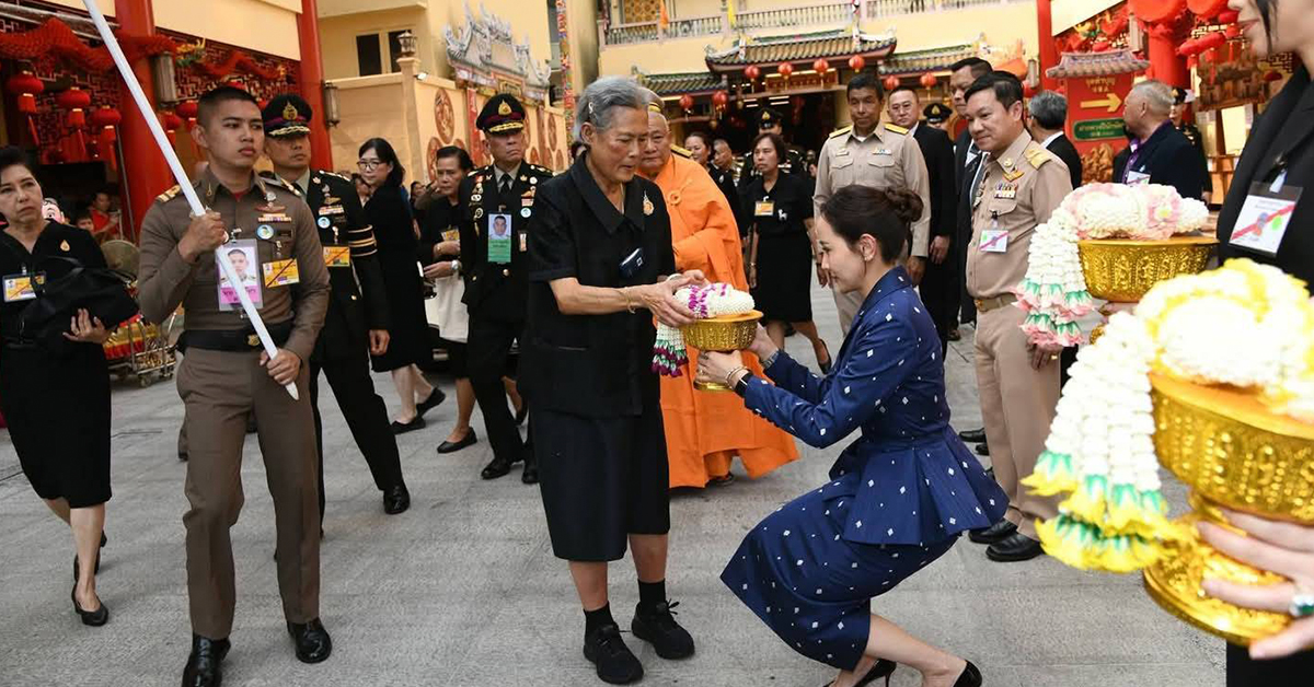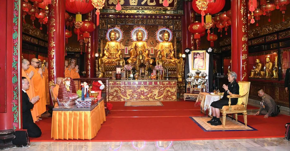 การนี้เวลา 09.57 น.สมเด็จพระกนิษฐาธิราชเจ้า กรมสมเด็จพระเทพรัตนราชสุดา ฯ สยามบรมราชกุมารี เสด็จพระราชดำเนินโดยรถยนต์พระที่นั่งจากโรงพยาบาลเทียนฟ้ามูลนิธิ ไปยังวัดมังกรกมลาวาส เมื่อเสด็จฯ ถึงพระคณาจารย์จีนธรรมวชิรานุวัตร เจ้าอาวาสวัดมังกรกมลาวาส คณะกรรมการจัดงานฯ และประชาชนเฝ้า ฯ รับเสด็จ โดยมีนางปภัชญา สิริวัฒนภักดี นางนันท์ฐิตา ศิริคุปต์และนางอรุณี ลิ้มประนะ ทูลเกล้า ฯ ถวายพวงมาลัย