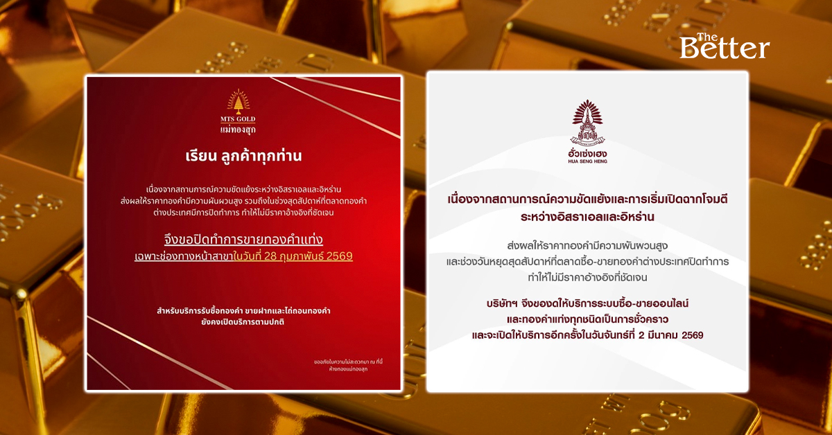 ขณะที่ร้านทองแม่ทองสุก ขอเรียนลูกค้าทุกท่าน เนื่องจากสถานการณ์ความขัดแย้งระหว่างอิสราเอลและอิหร่านส่งผลให้ราคาทองคำผันผวนสูงรวมทั้งตลาดสุดสัปดาห์ในต่างประเทศปิดทำการจึงขอปิดทำการขายทองคำแท่งเฉพาะหน้าสาขาในวันที่ 28 กุมภาพันธ์ สำหรับบริการซื้อทองคำ ขายฝาก และไถ่ถอนทองคำยังคงให้บริการปกติ