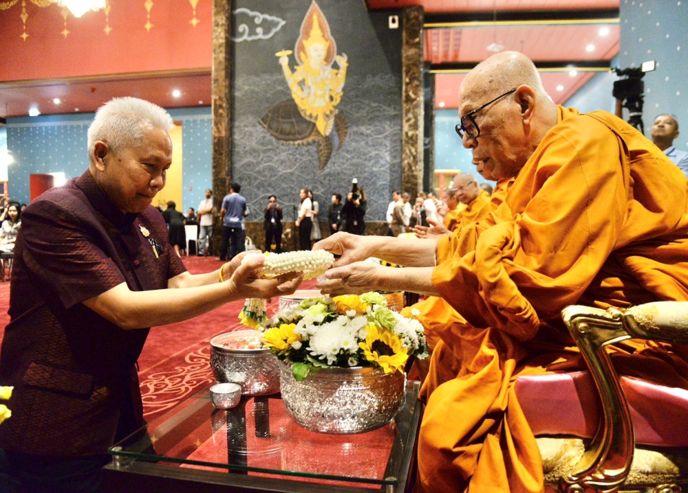 โดยภายในงานมีการจัดพิธีเจริญพระพุทธมนต์เพื่อความเป็นสิริมงคล มีการนิมนต์พระสงฆ์จำนวน 9 รูป มาทำพิธี โดยมีสมเด็จพระพุฒาจารย์ (สนิท ชวนปญฺโญ) เจ้าอาวาสวัดไตรมิตร เป็นประธานฝ่ายสงฆ์ จากนั้นนายโสภณได้นำข้าราชการสภาร่วมกันสรงน้ำพระ เนื่องในวันสงกรานต์
