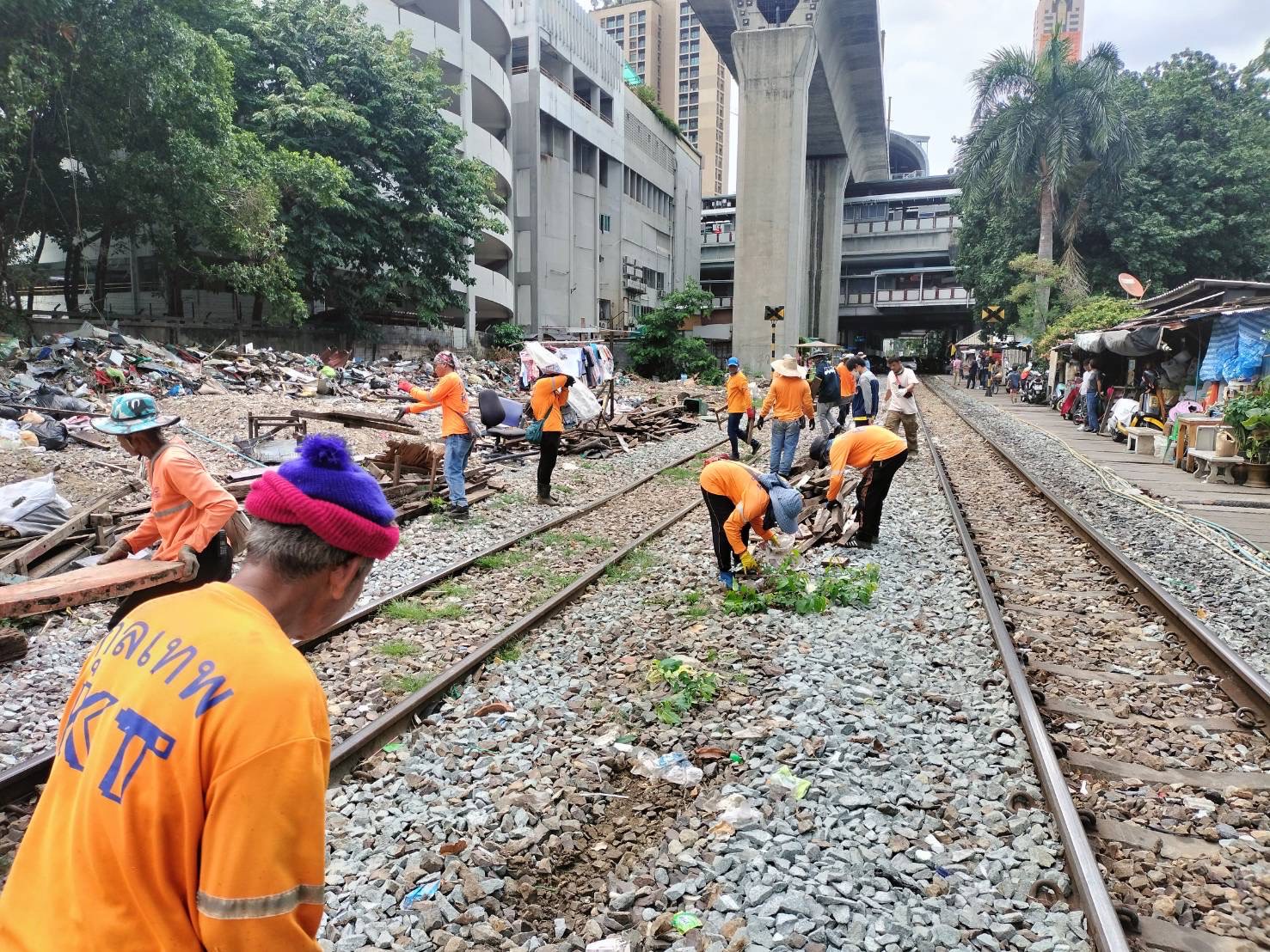 ปัจจุบันประชาชนผู้บุกรุกได้ทยอยออกจากพื้นที่อย่างต่อเนื่อง ซึ่งขยะส่วนใหญ่มาจากการรื้อถอนบ้านผู้บุกรุก ที่ทำให้มีทั้งเศษวัสดุหลังคากระเบื้อง ไม้อัด และสังกะสีแล้ว ยังมาจากประชาชนผู้บุกรุกบางส่วนนำขยะมาทิ้งด้วย อย่างไรก็ตามขณะนี้ฝ่ายการช่างโยธา การรถไฟฯ และเจ้าหน้าที่กรุงเทพมหานคร ร่วมประสานงาน และระดมแรงงานกว่า 30 คน ลงพื้นที่ทำความสะอาด และเก็บขยะบริเวณที่มีการรื้อย้ายสิ่งปลูกสร้างของผู้บุกรุก รวมทั้งบริเวณเส้นทางรถไฟ ซึ่งหลังจากนี้จะนำรถแบ๊คโฮเข้าหน้างาน และตักขยะส่วนที่เหลือออกไปด้วย ก่อนส่งมอบให้เอกชน