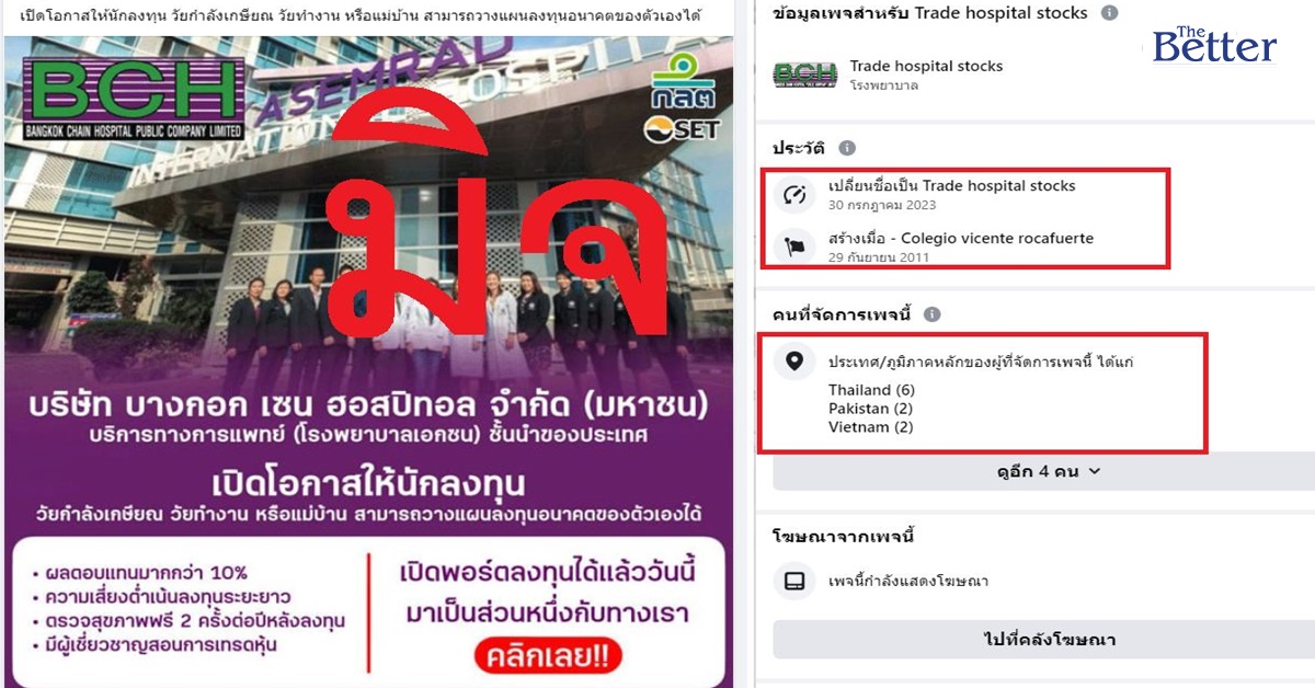 เพจดัง แจ้งเตือน ระวังมิจฉาชีพ มาในรูปชวนลงทุนหุ้น รพ.