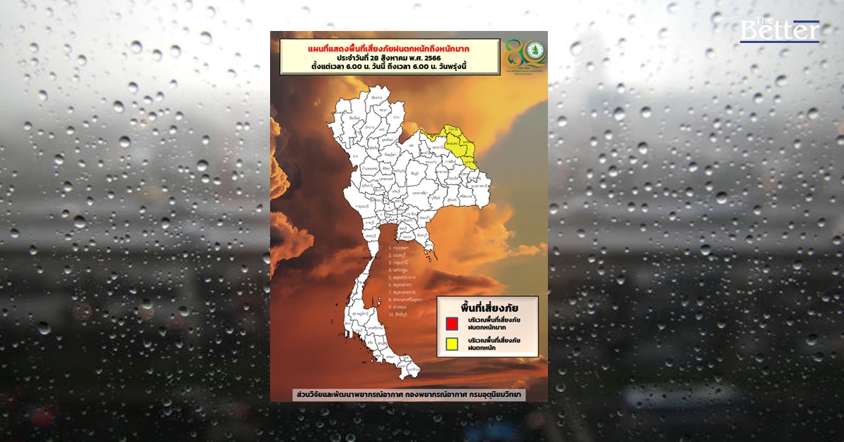 กรมอุตุนิยมวิทยา รายงานลักษณะอากาศทั่วไป ประจำวันที่ 28 สิงหาคม 2566 พยากรณ์อากาศ 24 ชั่วโมงข้างหน้า ร่องมรสุมพาดผ่านประเทศเมียนมาตอนบนและประเทศลาวตอนบน เข้าสู่หย่อมความกดอากาศต่ำบริเวณประเทศเวียดนามตอนบนและอ่าวตังเกี๋ย ในขณะที่มรสุมตะวันตกเฉียงใต้พัดปกคลุมทะเลอันดามัน ประเทศไทย และอ่าวไทย ลักษณะเช่นนี้ทำให้ประเทศไทยมีฝนฟ้าคะนองและมีฝนตกหนักบางแห่งในภาคตะวันออกเฉียงเหนือตอนบน ขอให้ประชาชนในบริเวณดังกล่าวระวังอันตรายจากฝนตกหนักซึ่งอาจทำให้เกิดน้ำท่วมฉับพลันและน้ำป่าไหลหลากในระยะนี้ไว้ด้วย สำหรับทะเลอันดามันและอ่าวไทย มีคลื่นสูงประมาณ 1 เมตร บริเวณที่มีฝนฟ้าคะนองคลื่นสูง 1-2 เมตร ขอให้ชาวเรือในบริเวณดังกล่าวเดินเรือด้วยความระมัดระวังและหลีกเลี่ยงการเดินเรือในบริเวณที่มีฝนฟ้าคะนอง