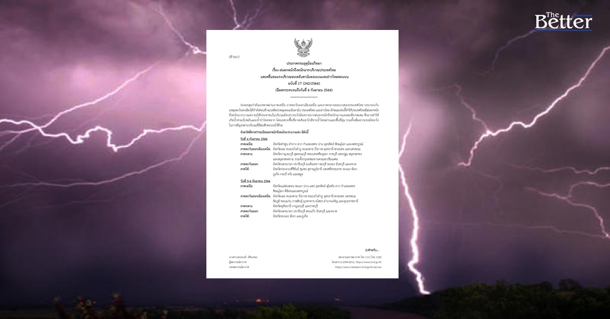 ประกาศกรมอุตุนิยมวิทยา เรื่อง ฝนตกหนักถึงหนักมากบริเวณประเทศไทย และคลื่นลมแรงบริเวณทะเลอันดามันตอนบนและอ่าวไทยตอนบน ฉบับที่ 17 (242/2566) (มีผลกระทบจนถึงวันที่ 6 กันยายน 2566)