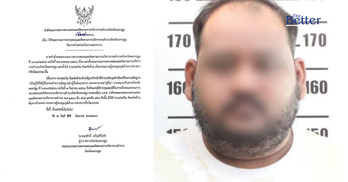 นายสุรศักดิ์ เจริญศิริโชติ ผู้ว่าราชการจังหวัดนครปฐม ประธานกรรมการตรวจสอบและติดตามการบริหารงานตำรวจจังหวัดนครปฐม ได้มีคำสั่งคณะกรรมการตรวจสอบและติดตามการบริหารงานตำรวจจังหวัดนครปฐม เรื่องให้คณะกรรมการตรวจสอบและติดตามการบริหารงานตำรวจจังหวัดนครปฐม พ้นจากจากตำแหน่งเป็นการเฉพาะราย