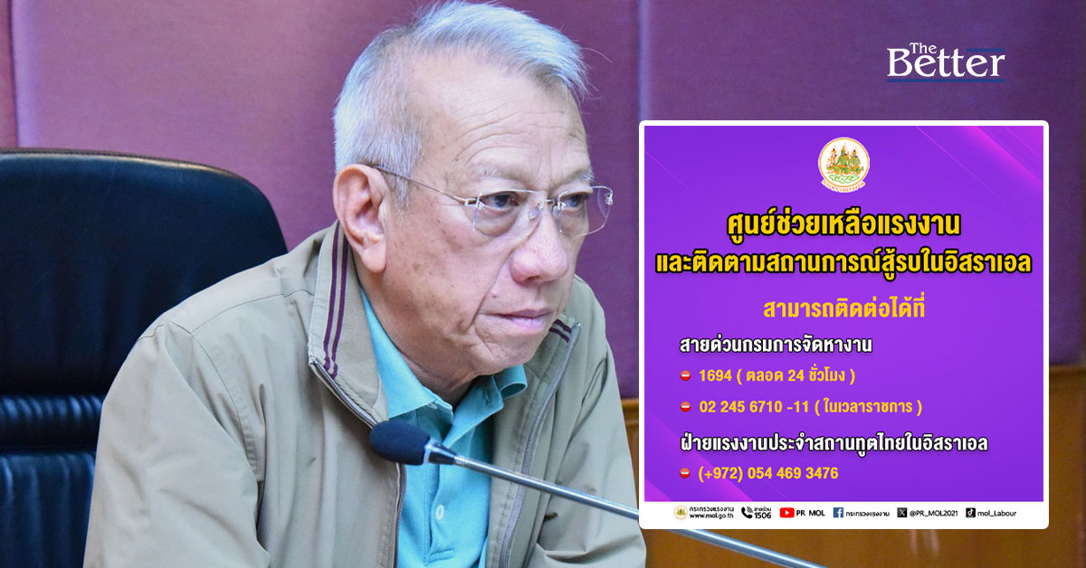 กระทรวงแรงงาน ตั้ง “ศูนย์ช่วยเหลือแรงงานและติดตามสถานการณ์สู้รบในอิสราเอล”พร้อมอัพเดทเบอร์โทรศัพท์ ในการติดต่อประสานงานช่วยเหลือแรงงานไทย เปิดสายด่วน 1694 ตลอด 24 ชั่วโมง