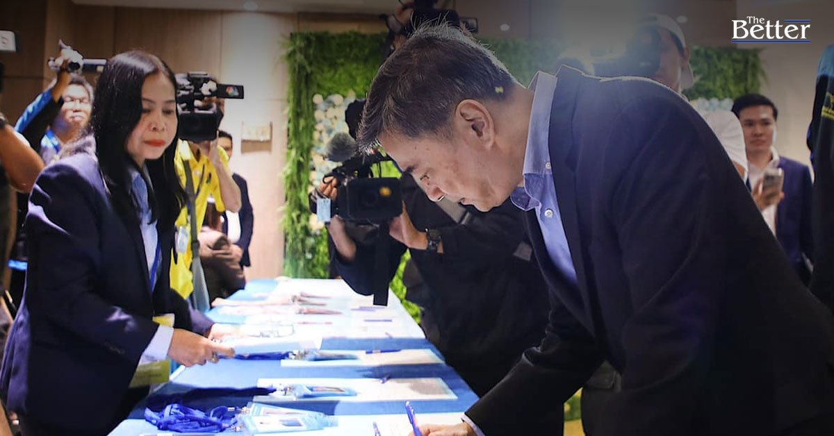 "อภิสิทธิ์" อารมณ์ดีเดินทางร่วมประชุมพรรค ปชป. ไม่รู้กระแสถูกเสนอชื่อรีเทิร์นเก้าอี้หัวหน้าพรรค