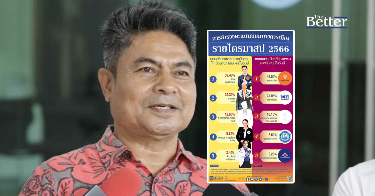 เมื่อเช้าผมได้ดูผลการสำรวจของนิด้าโพล ซึ่งเป็นผลการสำรวจคะแนนนิยมทางการเมือง ไตรมาสปี 2566 ปรากฎว่า คุณพิธา ลิ้มเจริญรัตน์ ประธานที่ปรึกษาหัวหน้าพรรคก้าวไกล ยังเป็นบุคคลที่มีคะแนนนำเป็นที่หนึ่ง 39.40% เป็นบุคคลที่ประชาชนสนับสนุนให้เป็นนายกรัฐมนตรี แซงหน้าคุณเศรษฐา ทวีสิน นายกรัฐมนตรี ที่ได้ 22.35% แบบทิ้งห่างกันมาก เมื่อรวมกับคะแนนของคุณอุ๊งอิ๊ง แพทองธาร ชินวัตร ที่ได้ 5.75% ก็ยังไม่ชนะอีก