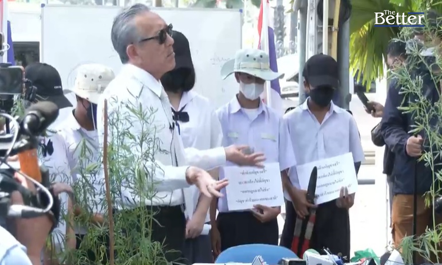 นายชูวิทย์ กมลวิศิษฏ์ อดีตนักการเมืองชื่อดัง เดินทางมายังหน้าทำเนียบรัฐบาล ตั้งโต๊ะแถลงข่าวสื่อมวลชน คัดค้านนโยบายกัญชาเสรีของพรรคภูมิใจไทย พร้อมกับพาเยาวชนสวมชุดนักเรียน จำนวน 5 คน และผู้ปกครองของนักเรียนอีก 1 คน มาร่วมแถลงข่าวด้วย อีกทั้งได้นำต้นกัญชาอีก 4 ต้น มาตัดโชว์เป็นสัญลักษณ์ไม่เอานโยบายกัญชาเสรี
