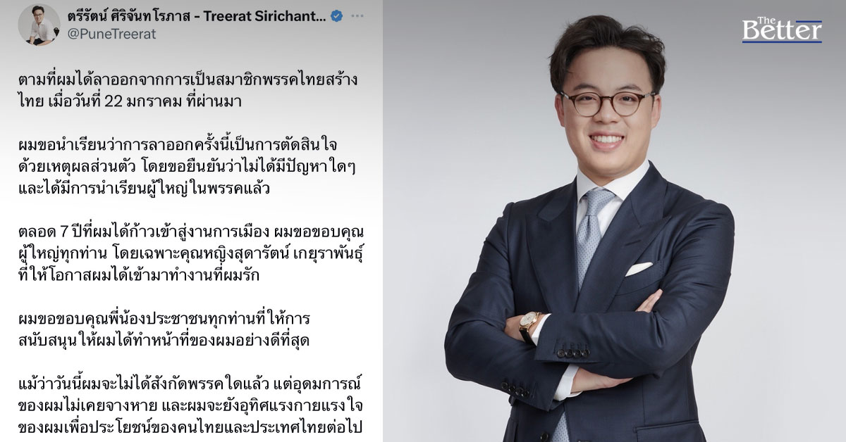 อดีตเลขาธิการพรรคไทยสร้างไทย "ปุ๊น ตรีรัตน์" ไขก๊อกทิ้งพรรคไทยสร้างไทย เผยเป็นเหตุผลส่วนตัว ลั่นแม้ไม่สังกัดพรรค แต่อุดมการณ์ไม่จางหาย