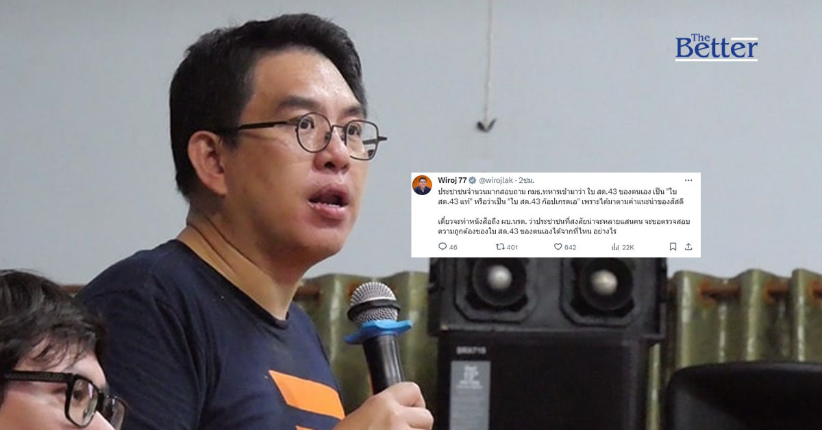 นายวิโรจน์ ลักขณาอดิศร สส.พรรคก้าวไกลและประธานคณะกรรมการการทหาร สภาผู้แทนราษฎร โพสต์ข้อความผ่าน X ว่า ประชาชนจำนวนมากสอบถาม กรรมาธิการทหารเข้ามาว่า ใบ สด.43 ของตนเอง เป็น "ใบ สด.43 แท้" หรือว่าเป็น "ใบ สด.43 ก๊อปเกรดเอ" เพราะได้มาตามคำแนะนำของสัสดี