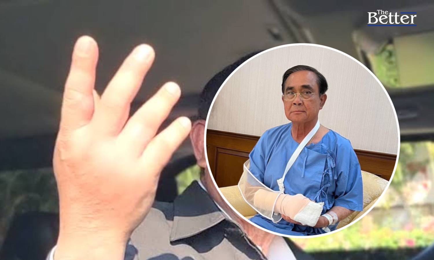ก่อนที่ นายธนกร จะโพสต์ภาพนายก ในชุดผู้ป่วยสีฟ้า พร้อมกับแขนทั้งแขนได้พันผ้าเอาไว้เกือบถึงข้อศอก พร้อมกับใส่ผ้าช่วยพยุงแขนเพื่อให้เคลื่อนไหวได้น้อยลง โดยนายธนกร โพสต์ย้ำว่า “ไม่ต้องเป็นห่วงครับ จิตใจนำพาร่างกายครับ”