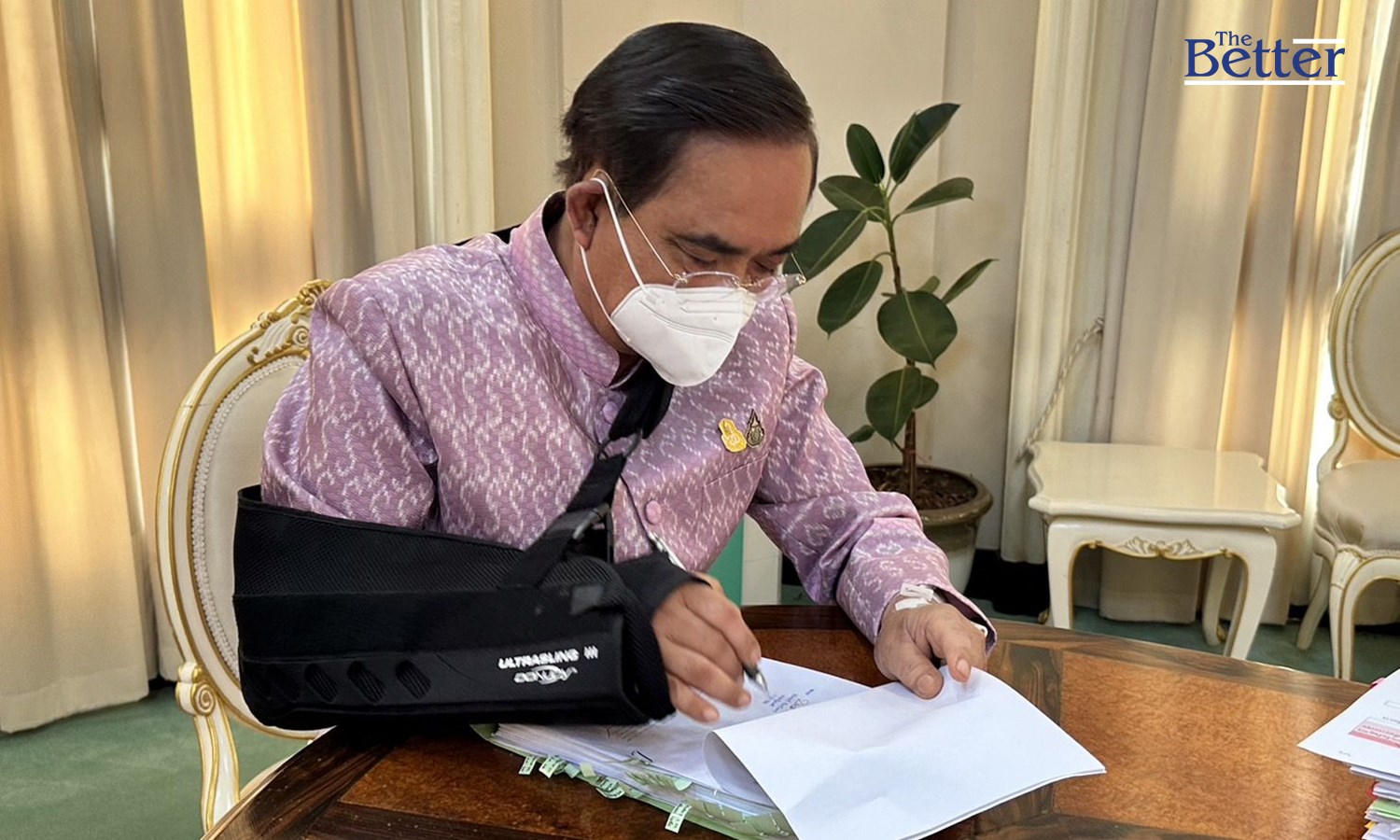 ด้านนายอนุชา บูรพชัยศรี รองเลขาธิการนายกรัฐมนตรีฝ่ายการเมือง ปฏิบัติหน้าที่โฆษกประจำสำนักนายกรัฐมนตรี เผยแพร่ภาพพล.อ.ประยุทธ์ นั่งทำงานที่โต๊ะห้องทำงานชั้น 2 ตึกไทยคู่ฟ้า โดยนายกฯโดยใช้มือข้างขวาเซ็นเอกสาร และข้างมือขวาใส่อุปกรณ์พยุงแขน (Arm Sling) ส่วนหลังมือซ้ายติดอุปกรณ์ทางการแพทย์
