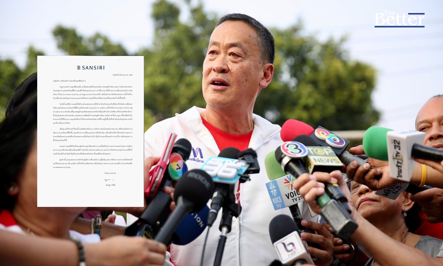 นายเศรษฐา ทวีสิน ประธานที่ปรึกษาหัวหน้าครอบครัวเพื่อไทย เขียนจดหมายถึง ผู้บริหารและพนักงานในเครือแสนสิริ ( SANSIRI ) ลงวันที่ วันพุธที่ 8 มีนาคม พ.ศ. 2566 มีเนื้อหาว่า