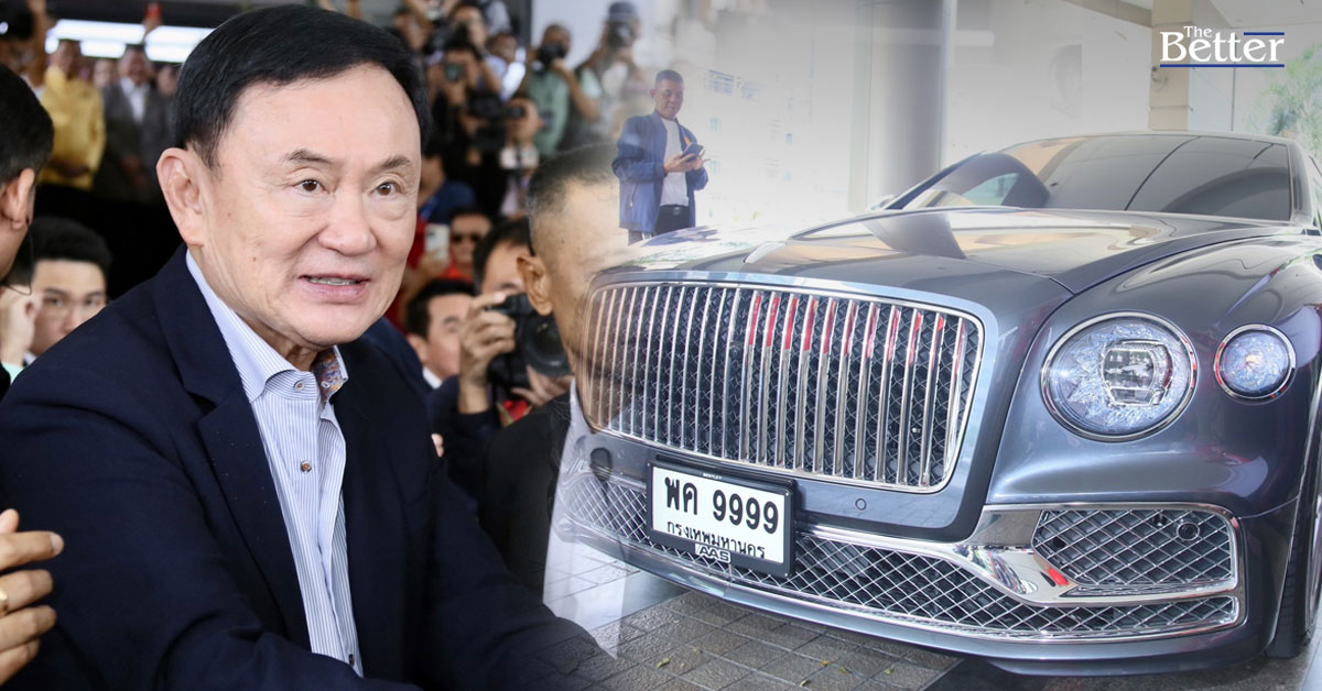 "ทักษิณ" นั่ง เบนท์ลี่ เข้าพรรคเพื่อไทย คนเสื้อแดง แห่ต้อนรับเพียบ