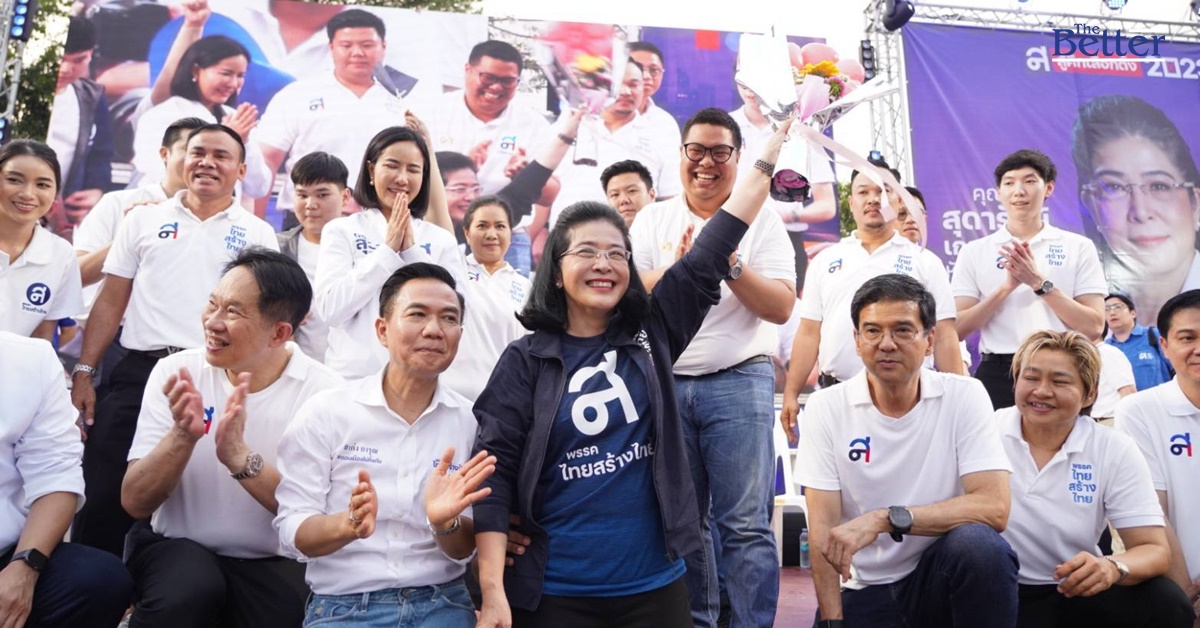 เมื่อวันที่ 20 มี.ค.ที่ ชุมชนปิ่นเจริญ 2 เขตดอนเมือง คุณหญิงสุดารัตน์ เกยุราพันธุ์ หัวหน้าพรรคไทยสร้างไทย พร้อมแกนนำพรรค ได้เปิดเวทีปราศรัย ช่วย นายการุณ โหสกุล ว่าที่ผู้สมัคร ส.ส.เขตดอนเมือง พรรคไทยสร้างไทย โดยคุณหญิงสุดารัตน์ กล่าวว่า ลงพื้นที่ดอนเมืองครั้งใดอบอุ่นหัวใจทุกครั้ง มีความผูกพันกับพี่น้องชาวดอนเมืองเนื่องจากเป็นส.ส.ครั้งแรกในพื้นที่แห่งนี้ เห็นปัญหาเห็นความทุกข์ยากและคอยดูแลช่วยเหลือกันมาตลอด ได้ผลักดันหลายนโยบายจนสำเร็จเป็นรูปธรรม แต่ก็ยังมีอีกหลากหลายปัญหาที่เกิดขึ้นและยังไม่ได้รับการแก้ไขอย่างจริงจัง เช่น ปัญหาฝุ่นพิษPM2.5 ผู้รับผิดชอบไม่ใส่ใจแก้ปัญหาอย่างจริงจัง ทำให้ปัญหาหนักหน่วงมากขึ้นทุกปี