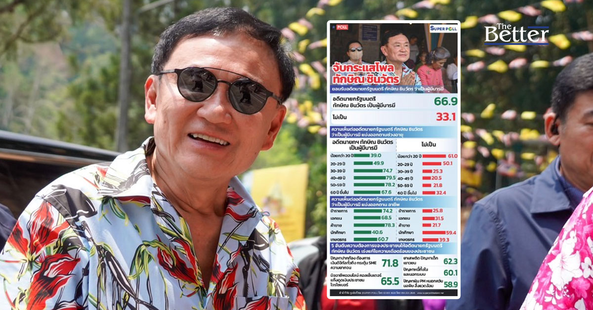 รายงานของ ซูเปอร์โพล ระบุว่า ประชาชนส่วนใหญ่มองว่าอดีตนายกรัฐมนตรี ทักษิณ ชินวัตร เป็นผู้มีบารมี สามารถช่วยแก้ไขปัญหาความต้องการของประชาชนได้ ความต้องการของประชาชนส่วนใหญ่เป็นเรื่องของปัญหาปากท้อง ต้องการเงินดิจิทัลทั่วถึง กระตุ้น SME แก้ไขปัญหาความยากจนทั่วประเทศ อีกทั้งยังต้องการให้แก้ไขปัญหามิจฉาชีพออนไลน์ โจรไซเบอร์ ยาเสพติด ปัญหาหนี้และปัญหาฝุ่น PM ปัญหาส่วนใหญ่ล้วนเป็นปัญหาประชาชนประสบพบเจอมาเป็นเวลานาน ทำให้ประชาชนคาดหวังให้อดีตนายกรัฐมนตรี ทักษิณ ชินวัตร เร่งแก้ไขปัญหาความเดือดร้อนของประชาชน บรรเทาทุกข์และแก้ไขปัญหาที่พบเจอให้หมดไป
