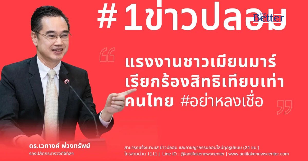 ดีอี เตือน หยุดแชร์ ข่าวปลอม “แรงงานชาวเมียนมาร์ เรียกร้องสิทธิเทียบเท่าคนไทย” หวั่นประชนเข้าใจผิดในสังคม