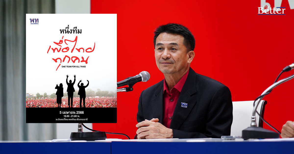 เพื่อไทยเตรียมเปิด "3 แคนดิเดตนายกฯ" ธีม ‘ONE TEAM FOR ALL THAIS : หนึ่งทีม เพื่อไทยทุกคน’ จัดปราศรัยใหญ่อีกครั้ง 5 เม.ย. ธันเดอร์โดม เมืองทองธานี