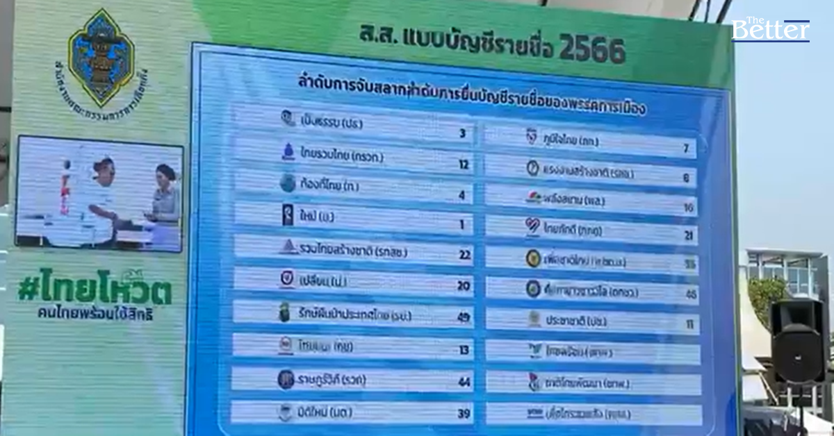 ผลการจับสลากปรากฎว่า พรรคเพื่อชาติไทย หมายเลข 36 ,พรรคมิติใหม่ หมายเลข 39 ,พรรคชาติไทยพัฒนา หมายเลข 18 ,พรรคประชาธิปไตยใหม่ หมายเลข 2 ,พรรคพลังสยาม หมายเลข 16 ,พรรคแรงงานสร้างชาติ หมายเลข 8 ,พรรคแนวทางใหม่ หมายเลข 45 ,พรรครวมใจไทย หมายเลข 23 ,พรรคไทยรวมไทย หมายเลข 12 ,พรรคพลัง หมายเลข 9, พรรคไทยธรรม หมายเลข 41 ,พรรคพลังท้องที่ไทย หมายเลข 4 ,พรรคเพื่ออนาคตไทย หมายเลข 48 ,พรรคแผ่นดินธรรม หมายเลข 34 ,พรรคเป็นธรรม หมายเลข 3 ,พรรคประชาชาติ หมายเลข 11 ,พรรคภาคีเครือข่ายไทย หมายเลข 19 ,พรรครวมแผ่นดิน หมายเลข 47 ,พรรคพลังสหกรณ์ หมายเลข 43