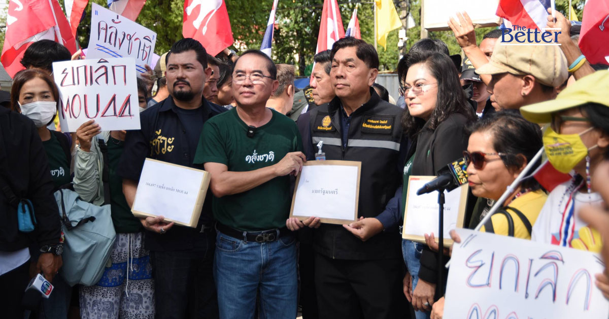 ‘หมอวรงค์’ นำทีม "กลุ่มคนคลั่งชาติ" ยื่นแสนรายชื่อ ขอรัฐบาลยกเลิกเอ็มโอยู 44 ขู่ อย่าประมาทประชาชน หากยังเดินหน้า เตรียมบุกทำเนียบอีกรอบ