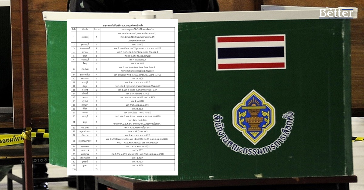 สำนักงานคณะกรรมการการเลือกตั้งจึงสรุปข้อมูลผู้สมัครรับเลือกตั้งแบบแบ่งเขตเลือกตั้ง ทั้งสิ้น 4,710 คน โดยมีผู้ที่ผู้อำนวยการการเลือกตั้งประจำเขตเลือกตั้งประกาศไม่รับสมัครจาก 31 จังหวัด จำนวน 71 คน เนื่องจากขาดคุณสมบัติมีลักษณะต้องห้าม ดังนี้