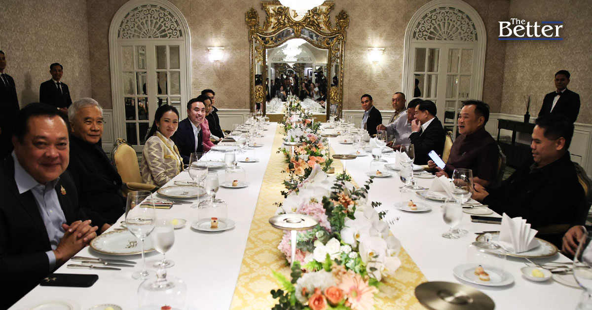 ในระหว่างที่อยู่ในห้องรับรอง นายอนุทิน ได้ให้หัวหน้าพรรค และเลขาธิการพรรค ที่เข้าร่วมดินเนอร์ จ่ายค่าอาหารคนละ 7,000 บาท ให้กับตนเองเนื่องจากเป็นเจ้าภาพจัดรับรอง จัดการหาในครั้งนี้และออกค่าใช้จ่ายทั้งหมดไปก่อน เพราะงานเลี้ยงวันนี้เป็นแบบอเมริกันแชร์ ทำให้หัวหน้า และเลขาธิการพรรคร่วมฯ ที่อยู่ในห้องรับรองได้หยิบโทรศัพท์ขึ้นมาสแกนจ่ายให้กับ นายอนุทิน ทันที ส่วนนายเฉลิมชัย ศรีอ่อน รัฐมนตรีว่าการกระทรวงทรัพยากร ธรรมชาติและสิ่งแวดล้อม ในฐานะหัวหน้าพรรคประชาธิปัตย์ได้นับเงินสดจ่ายให้กับ นายอนุทิน