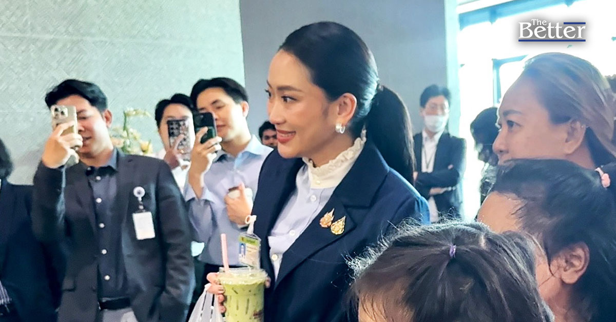 เมื่อถามต่อว่าเพราะโดนโซเดียมเข้าไปเยอะ น.ส.แพทองธาร หัวเราะก่อนกล่าวว่าต้องเติมน้ำตาล นึกถึงตอนเรียนที่จุฬาลงกรณ์มหาวิทยาลัยอยากกินยาคูลท์ปั่นปีโป้