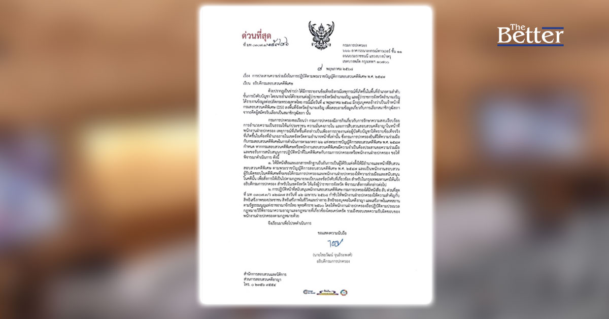กรมการปกครอง ยินดีให้ความร่วมมือ กับกรมสอบสวนคดีพิเศษในการดำเนินการตามมาตรา 22 แห่งพระราชบัญญัติการสอบสวนคดีพิเศษ โดยขอให้พิจารณาดำเนินการ
