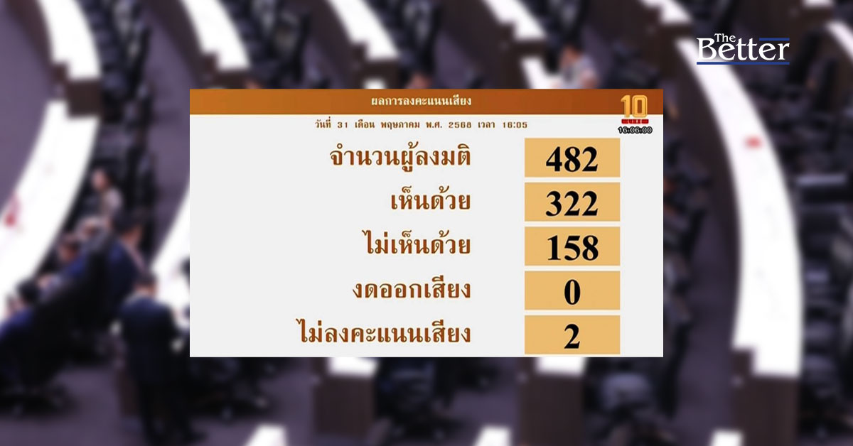 ถกยาวกว่า 41 ชั่วโมง สภาผู้แทนราษฎรโหวตเห็นชอบร่าง พ.ร.บ.งบประมาณปี 2569 วาระแรก ด้วยเสียงสนับสนุน 322 เสียงต่อ 158 เสียง ตั้ง กมธ.วิสามัญฯ เร่งพิจารณาก่อนเข้าสู่การพิจารณาวาระ 2-3 ต่อไป