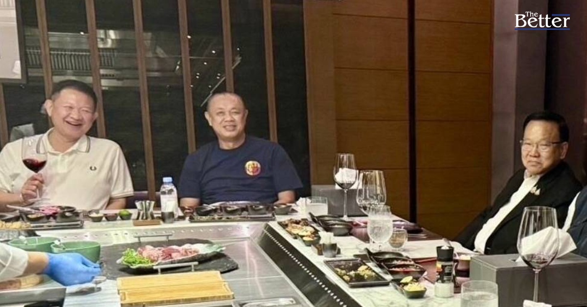 ล่าสุด ยังมีภาพหลุด นายเนวิน ชิดชอบ ครูใหญ่พรรคภูมิใจไทย ร่วมรับประทานอาหารกับนายสันติ และนายอัครเดชอีกด้วย