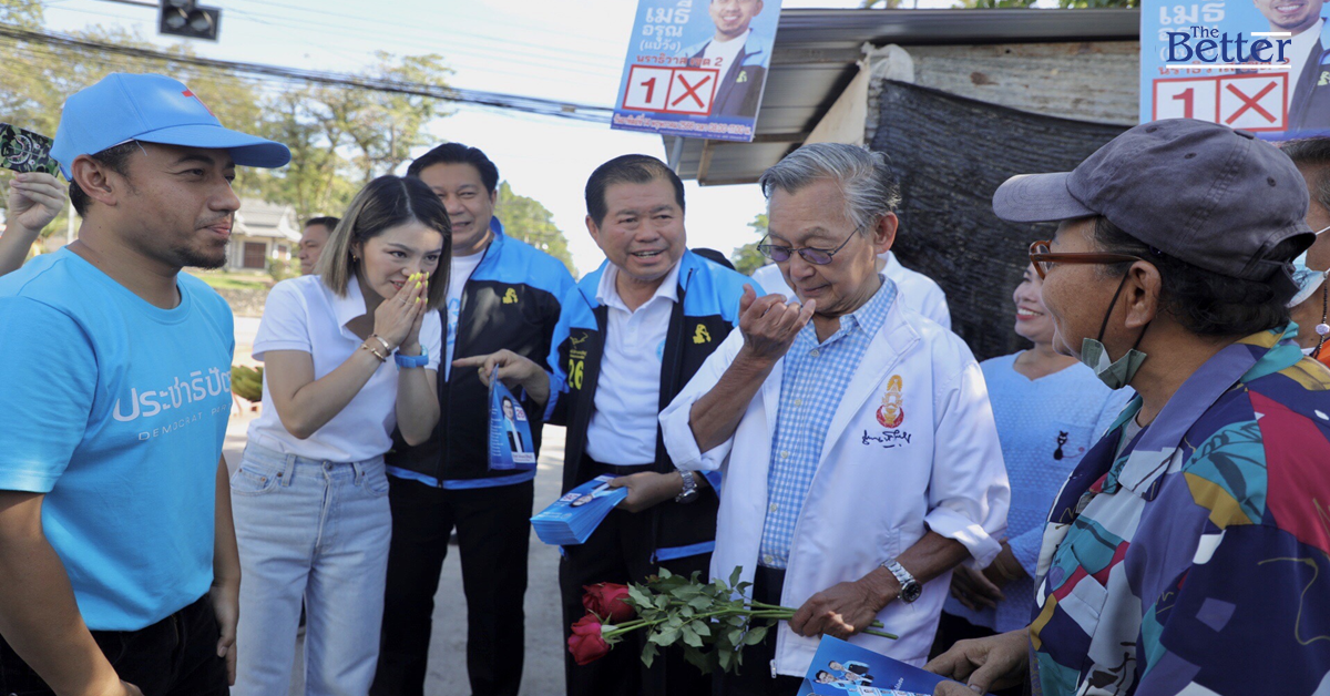 นายชวน หลีกภัย อดีตหัวหน้าพรรคประชาธิปัตย์ พร้อมด้วยนายนิพนธ์ บุญญามณี รองหัวหน้าพรรค น.ส.วทันยา บุนนาค ประธานคณะทำงานนวัตกรรมการเมือง กทม. ศ.ดร.สุชัชวีร์ สุวรรณสวัสดิ์ ประธานคณะทำงานนโยบาย กทม. ขึ้นรถแห่รอบเทศบาลเมืองนราธิวาส ช่วยหาเสียงให้กับนายวสันต์ ดือเร๊ะ ผู้สมัคร ส.ส. นราธิวาส เขต 1 เบอร์ 6