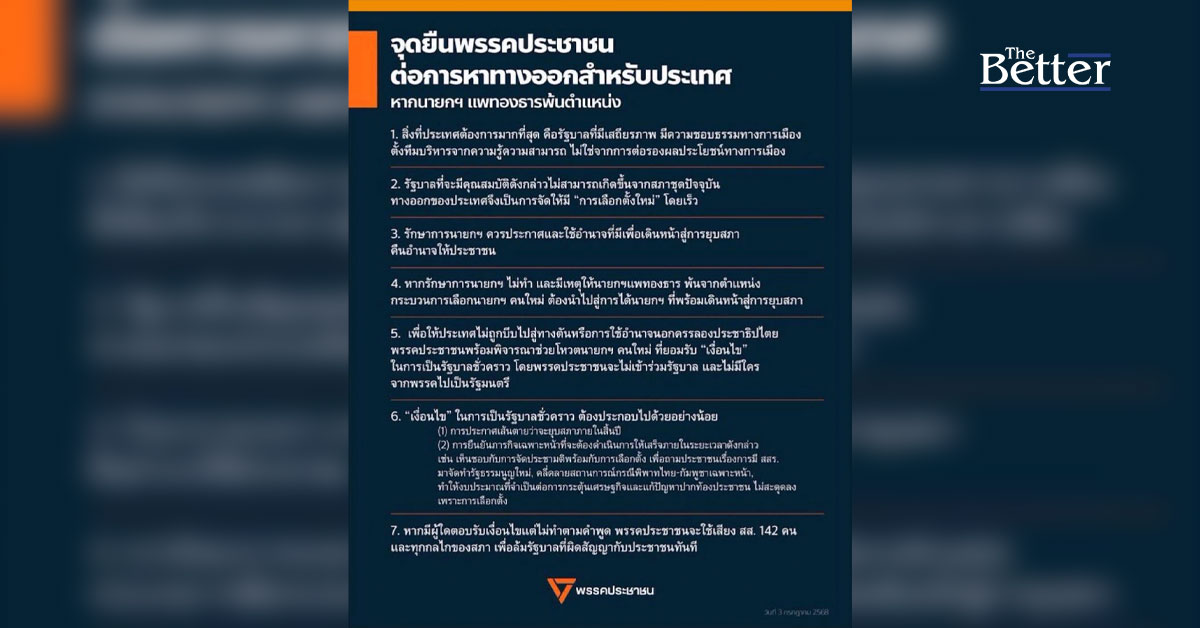 “จุดยืนพรรคประชาชนต่อการหาทางออกสำหรับประเทศ หากนายกฯ แพทองธารพ้นตำแหน่ง