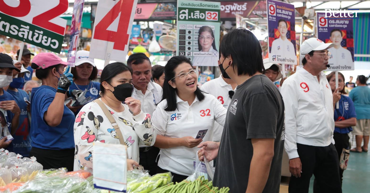 คุณหญิงสุดารัตน์ เกยุราพันธุ์ หัวหน้าพรรคไทยสร้างไทย และแคนดิเดต นายกรัฐมนตรีพรรคไทยสร้างไทย หมายเลข 32 พร้อมด้วย ดร.เกรียงไกร ไกรนรา ผู้สมัคร ส.ส. หมายเลข 4 เขตเลือกตั้งที่ 9 พรรคไทยสร้างไทย และนายสมชายเวสารัชตระกูล ผู้สมัครส.ส.หมายเลข 9 เขตเลือกตั้งที่ 11 พรรคไทยสร้างไทย ลงพื้นที่ พบปะพี่น้องประชาชน พ่อค้าแม่ขายที่ตลาดยิ่งเจริญ ซึ่งได้รับการต้อนรับอย่างอบอุ่น จากพี่น้องประชาชนที่มาเดินจับจ่ายใช้สอย รวมถึงพ่อค้าแม่ขายให้การต้อนรับ เป็นอย่างดีเช่นกัน พร้อมฝากของกินของใช้ ให้คุณหญิงสุดารัตน์ และทีมงาน ไว้กินไว้ใช้ระหว่างการลงพื้นที่ รอบกรุงเทพมหานคร วันนี้ด้วย