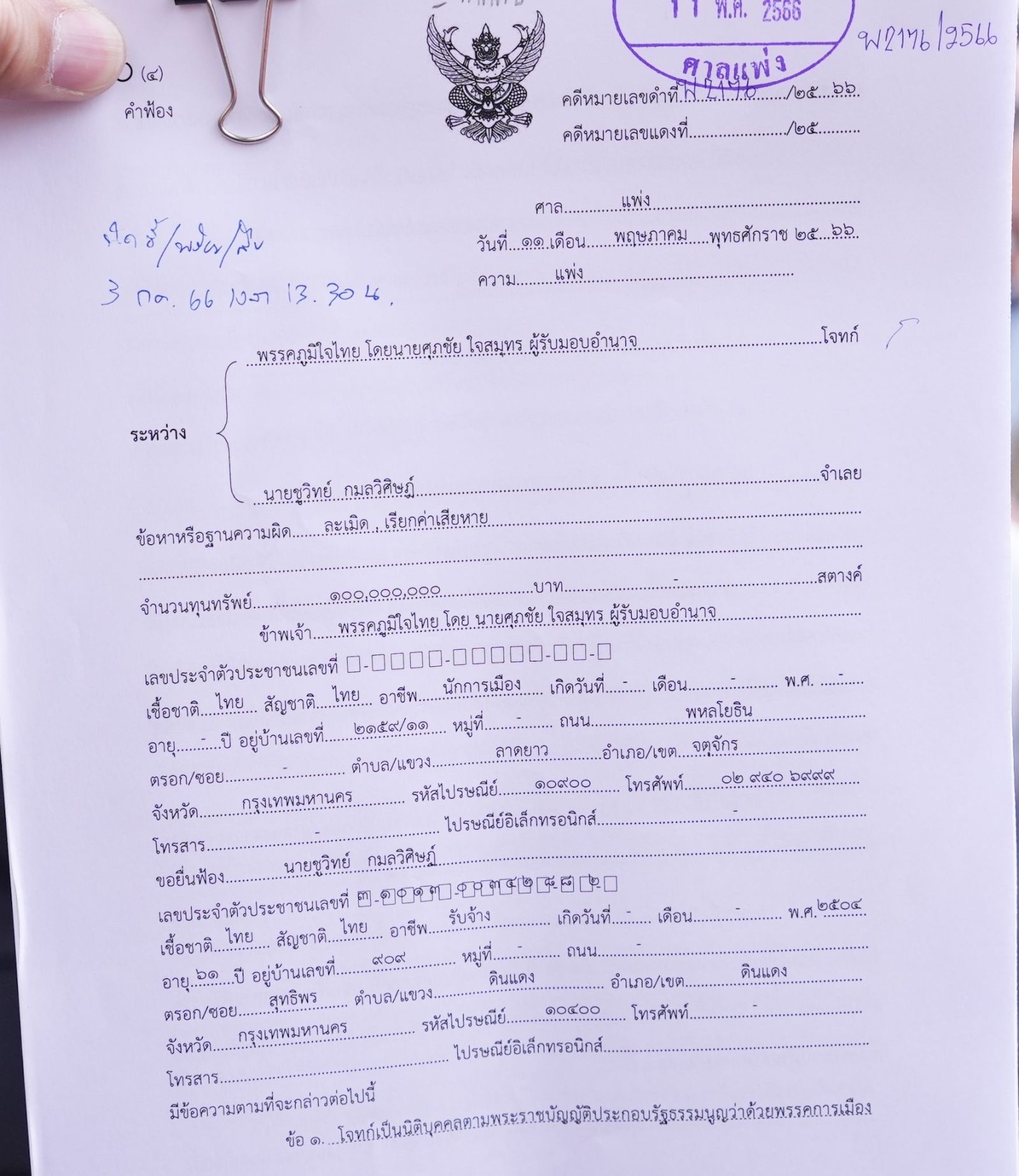 วันที่ 11 พ.ค. 2566 พรรคภูมิใจไทย ได้มอบหมายให้ น.ส.ณัฐชนิกานต์ เกตุคำขวา และนายพิชัย เอี่ยมอ่อน พร้อมด้วยทีมทนายความประจำพรรคภูมิใจไทย ยื่นฟ้องนายชูวิทย์ กมลวิศิษฎ์ ในข้อหาละเมิด และมีการคิดค่าเสียหาย 100 ล้านบาท พร้อมกับการคุ้มครองขอชั่วคราว กับผู้พิพากษาและขอการไต่สวนฉุกเฉิน