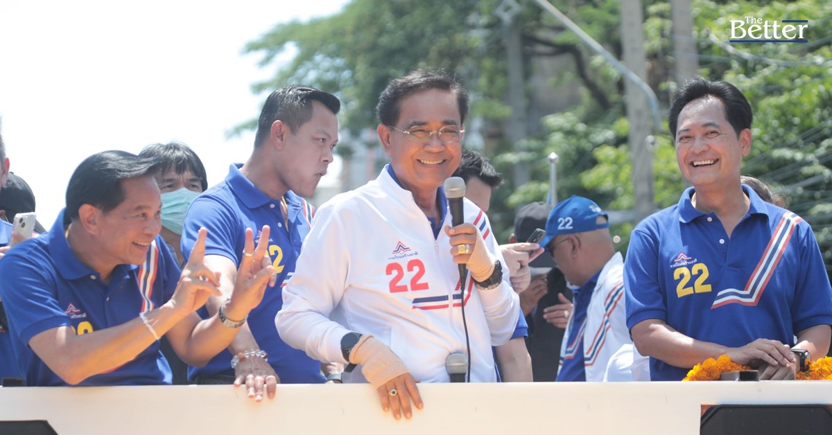 เมื่อเวลา 13.00 น. วันที่ 13 พฤษภาคม พล.อ.ประยุทธ์ จันทร์โอชา ประธานกำหนด แนวทางและยุทธศาสตร์พรรค และแคนดิเดตนายกรัฐมนตรีพรรครวมไทยสร้างชาติ (รทสช.) พร้อมนายเอกนัฏ พร้อมพันธุ์ เลขาธิการพรรค และผู้บริหารพรรค ได้เดินทางมาสมทบกับคณะของ นายพีระพันธุ์ สาลีรัฐวิภาค หัวหน้าพรรค ขึ้นรถแห่หาเสียง หลังจากเสร็จสิ้นการประชุม ตัวแทนผู้สมัคร ส.ส.ของพรรคทั่วประเทศ โดย พล.อ.ประยุทธ์ ยังมีสีหน้าที่แจ่มใส แม้ว่าที่ผ่านมาจะเดินทางหาเสียง ท่ามกลางอากาศร้อนและฝนตกไปทั่วประเทศ รวมทั้งปราศรัย ในทุกเวทีที่เดินทางไป ทั้งนี้ระหว่างที่ พล.อ.ประยุทธ์และคณะ ขึ้นรถแห่หาเสียง ที่ร้านศรแดง บริเวณอนุสาวรีย์ประชาธิปไตย มีประชาชนมา ส่งเสียงเชียร์ และขอให้ พล.อ.ประยุทธ์ สู้เพื่อคนไทยต่อไป พร้อมมอบดอกไม้เป็นกำลังใจ โดย พล.อ.ประยุทธ์ได้กล่าวทักทายด้วยรอยยิ้ม ไม่มีท่าทีเหน็ดเหนื่อยแต่อย่างใด
