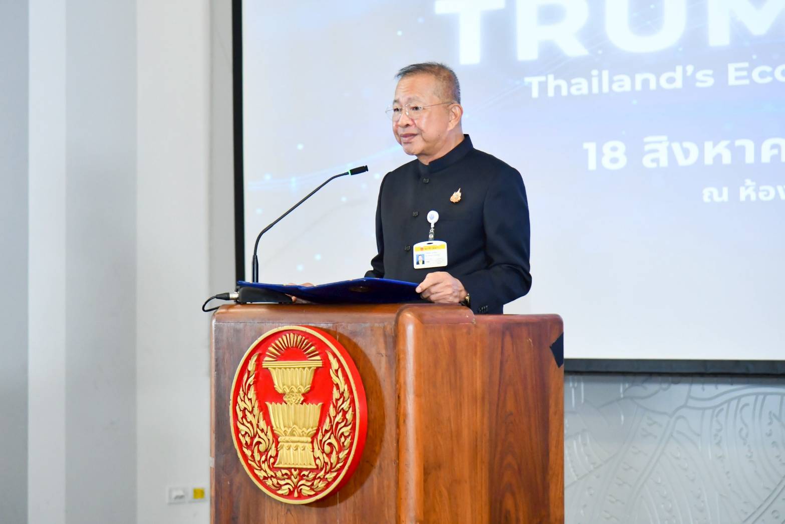 ภายในงานสัมมนามีการบรรยายเรื่อง “จากภาษีทรัมป์สู่ภูมิรัฐศาสตร์การค้าโลกใหม่: ทางเลือกและทางรอดของไทยในสงคราม การค้าเชิงโครงสร้าง” โดยรองศาสตราจารย์ปิติ ศรีแสงนาม ผู้อำนวยการบริหาร มูลนิธิอาเซียน ณ กรุงจาการ์ตา ประเทศอินโดนีเซีย และรองศาสตราจารย์ประจำคณะเศรษฐศาสตร์ จุฬาลงกรณ์มหาวิทยาลัย นอกจากนี้ เป็นการสัมมนาเรื่อง “จากโต๊ะเจรจาสู่ภาคปฏิบัติ: ถอดบทเรียนภาษีทรัมป์” From Negotiation to Action: Lessons from the Trump Tariff Talks” โดยนายพจน์ อร่ามวัฒนานนท์ ประธานกรรมการสภาหอการค้าแห่งประเทศไทย นายเกรียงไกร เธียรนุกุล ประธานสภาอุตสาหกรรมแห่งประเทศไทย นายผยง ศรีวณิช ประธานสมาคมธนาคารไทย และกรรมการผู้จัดการใหญ่ธนาคารกรุงไทย ดำเนินรายการโดย นายชิบ จิตนิยม สมาชิกวุฒิสภา