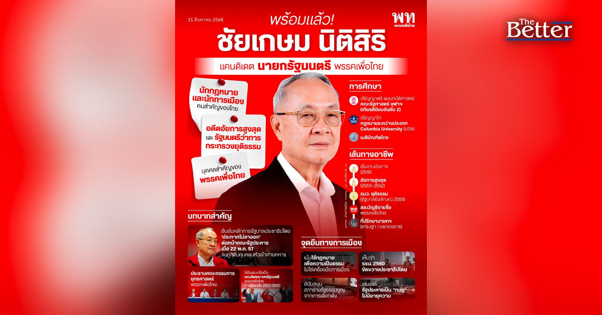 พรรคเเพื่อไทย เปิดประวัติ "ชัยเกษม นิติสิริ" แคนดิเดตนายกรัฐมนตรี ชู ประสบการณ์ด้านกฎหมาย-การเมือง ยืนหยัดหลักประชาธิปไตยและนิติรัฐ