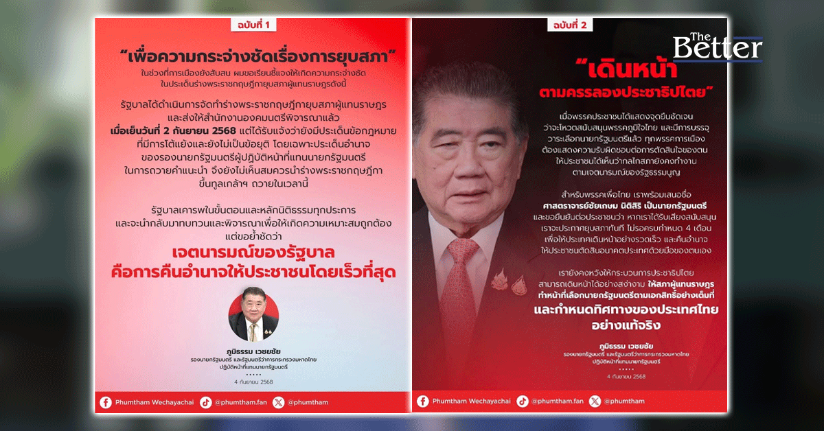 นายภูมิธรรม เวชยชัย รองนายกรัฐมนตรีและรมว.มหาดไทย ปฏิบัติหน้าที่แทนนายกรัฐมนตรี โพสต์เฟซบุ๊ก Phumtham Wechayachai ระบุว่า ฉบับที่ 1 “เพื่อความกระจ่างชัดเรื่องการยุบสภา” ในช่วงที่การเมืองยังสับสน ผมขอเรียนชี้แจงให้เกิดความกระจ่างชัดในประเด็นร่างพระราชกฤษฎีกายุบสภาผู้แทนราษฎรดังนี้