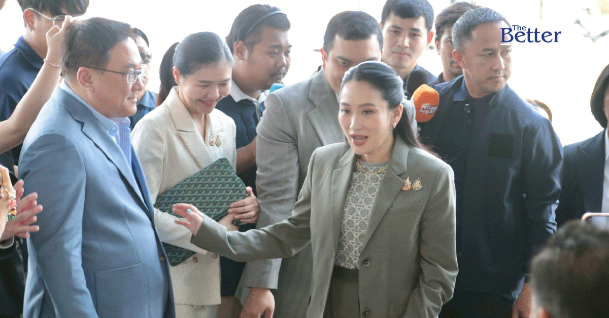 “แพทองธาร” เข้า “พรรคเพื่อไทย” พยักหน้ารับ หลังสื่อถาม มาปลุกใจ ส.ส.ปม “ทักษิณ” เข้าเรือนจำ