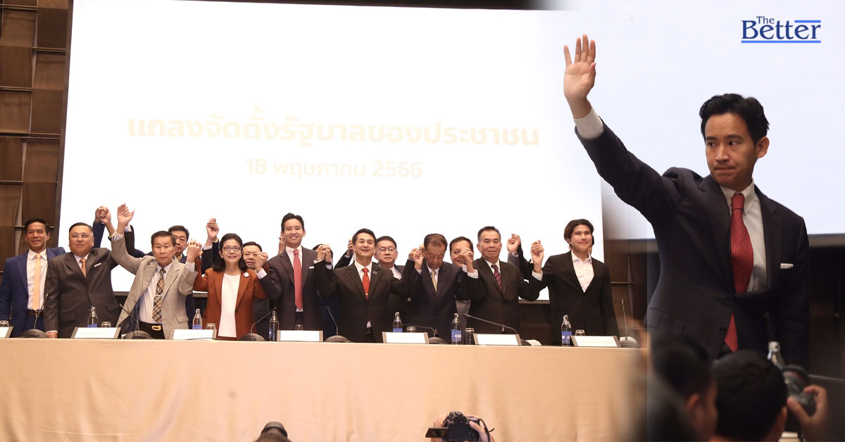 วันที่ 18 พ.ค. 2566 ในที่ประชุม 8 พรรคร่วม พรรคก้าวไกลได้เสนอ ประเด็นที่ทำ MOU ที่จะประกอบรัฐบาลเพื่อให้พรรคร่วมได้ไปศึกษา นายชัยธวัช ตุลาธน เลขาธิการพรรคก้าวไกล กล่าวถึงการเซ็น MOU ที่จะเกิดขึ้นในวันที่ 22 พ.ค.นี้ ว่าทุกพรรคก็เห็นด้วยที่จะมีการเซ็น MOU และแถลงข่าวในวันที่ 22 พ.ค. อย่างที่ทราบเพราะเป็นวันครบรอบการรัฐประหารในปี 57
