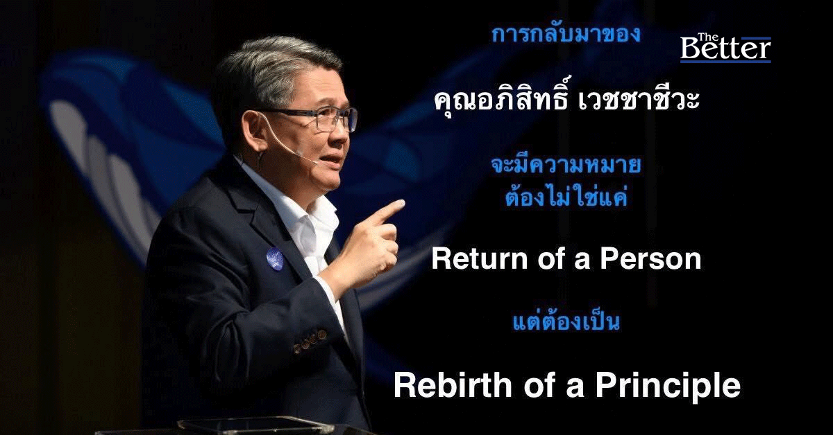 และในจังหวะแบบนี้ การกลับมาของคุณอภิสิทธิ์ จะมีความหมาย ก็ต่อเมื่อมันไม่ใช่ Return of a Person แต่คือ Rebirth of a Principle