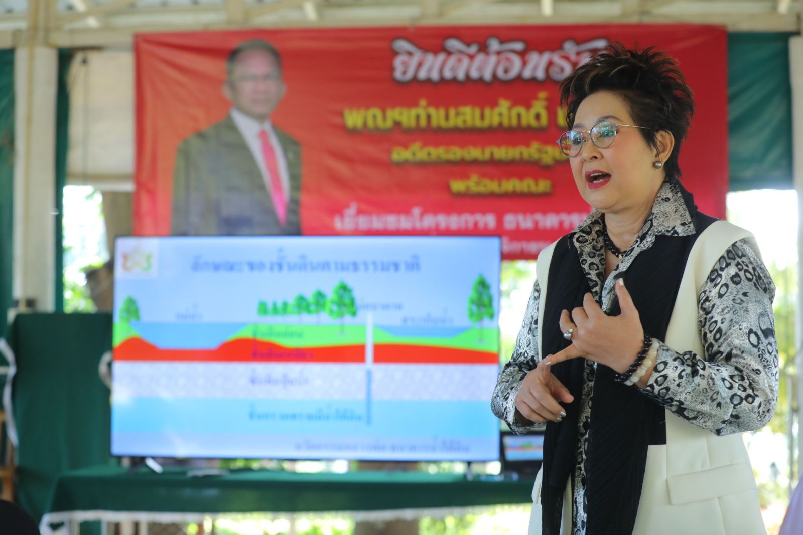 “ที่ผ่านมา หลายพื้นที่ทั้งภูเขา พื้นที่ป่า ไม้ถูกตัดทำลาย ปลูกป่าทดแทนได้ยากต้องมีการดูแลและอาศัยการมีส่วนร่วม การทำธนาคารน้ำใต้ดินบนพื้นที่ป่าจะช่วยสร้างความชุ่มชื้นในดิน ป้องกันไฟป่า โดยอยากนำโมเดลนี้ ไปทำทั่วประเทศ จากเดิมเมื่อฝนตก น้ำจะระเหยหรือไหลลงแม่น้ำอย่างรวดเร็ว เพราะไม่มีต้นไม้เบรค เมื่อมีธนาคารน้ำใต้ดินช่วยดูดซึมน้ำ จะช่วยแก้ปัญหาได้ในหลายด้าน ทั้งเก็บน้ำ สร้างความชุ่มชื้น สร้างต้นไม้ ช่วยบรรเทาน้ำท่วม ป้องกันไฟป่า จึงเชื่อว่าจะเป็นประโยชน์ต่อพี่น้องประชาชนเป็นอย่างมาก” นายสมศักดิ์ กล่าว