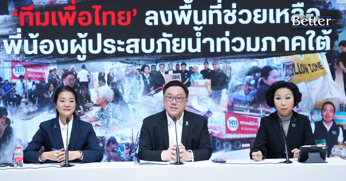 นายจุลพันธ์ อมรวิวัฒน์ หัวหน้าพรรคเพื่อไทย พร้อมด้วยนางสาวธีรรัตน์ สำเร็จวาณิชย์ รองหัวหน้าพรรค และทพญ.ศรีญาดา ปาลิมาพันธ์ ร่วมแถลงข่าวการลงพื้นที่เยี่ยมพี่น้องผู้ประสบอุทกภัยที่จังหวัดสงขลา เสนอมาตรการเร่งด่วน 4 ข้อได้แก่ การเร่งพิสูจน์อัตลักษณ์บุคคลให้ชัดเจน เพิ่มนักจิตวิทยาลงพื้นที่เพื่อเยียวยาจิตใจกลุ่มผู้เประาบาง จัดมาตรการฟื้นฟูเมืองหาดใหญ่ให้เป็นรูปธรรม และมาตรการกระตุ้นเศรษฐกิจทั้งระยะสั้นและระยะยาวเพื่อให้เศรษฐกิจภาคใต้ฟื้นกลับมาเดินเครื่องอีกครั้ง
