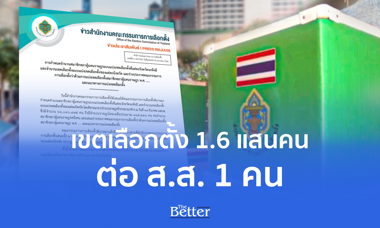 สำนักงานคณะกรรมการเลือกตั้งได้กำหนดจำนวน ส.ส. แบ่งเขตเลือกตั้งที่แต่ละจังหวัดพึ่งมี และจำนวนเขตเลือกตั้งของแต่ละจังหวัด โดยได้พิจรณาจากจำนวนประชากรทั้งหมดในประเทศตั้งแต่ วันที่ 31 ธ.ค.2565 มีจำนวนทั้งสิ้น 66,090,475 คน โดยแบ่งเป็นจำนวนประชากรโดยเฉลี่ยประมาณ 165,226 คน ต่อจำนวน ส.ส. 1 คน