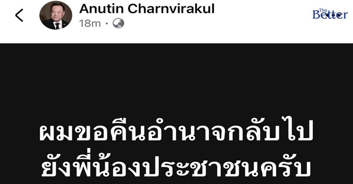 "อนุทิน" โพสต์เฟซบุ๊กประกาศคืนอำนาจให้ประชาชน หลังกราบบังคมทูล เพื่อทรงพระกรุณาโปรดเกล้าฯ ร่าง พ.ร.ฎ. ยุบสภาผู้แทนราษฎรเรียบร้อย นำไปสู่การเลือกตั้งใหม่ในไม่ช้า